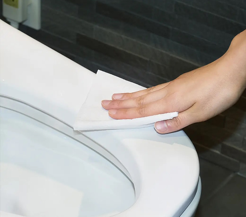 除菌液をトイレットペーパーに吹き付け便座を拭くと素早く除菌することができます。